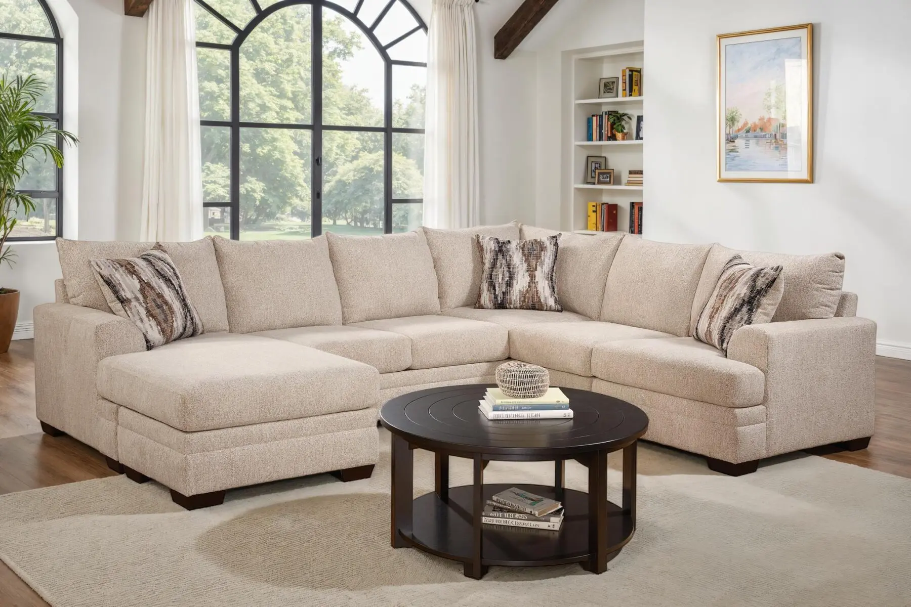 Premium Sand Fabric: Elegant, neutral upholstery that brightens any interior living space.